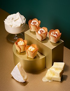 累計販売数5000万個を突破したブランド代表作『チューリップローズ』から、乳のうまさを突き詰めた『チューリップローズ チーズ』が誕生します。ミルキーなチーズの味わいを目指して、フランス産クリームチーズ香るラングドシャクッキーにクリームチーズ&カマンベールの生食感ショコラクリームをしぼりました。贅沢なコクのカマンベールショコラを散りばめて、味わいのアクセントに。